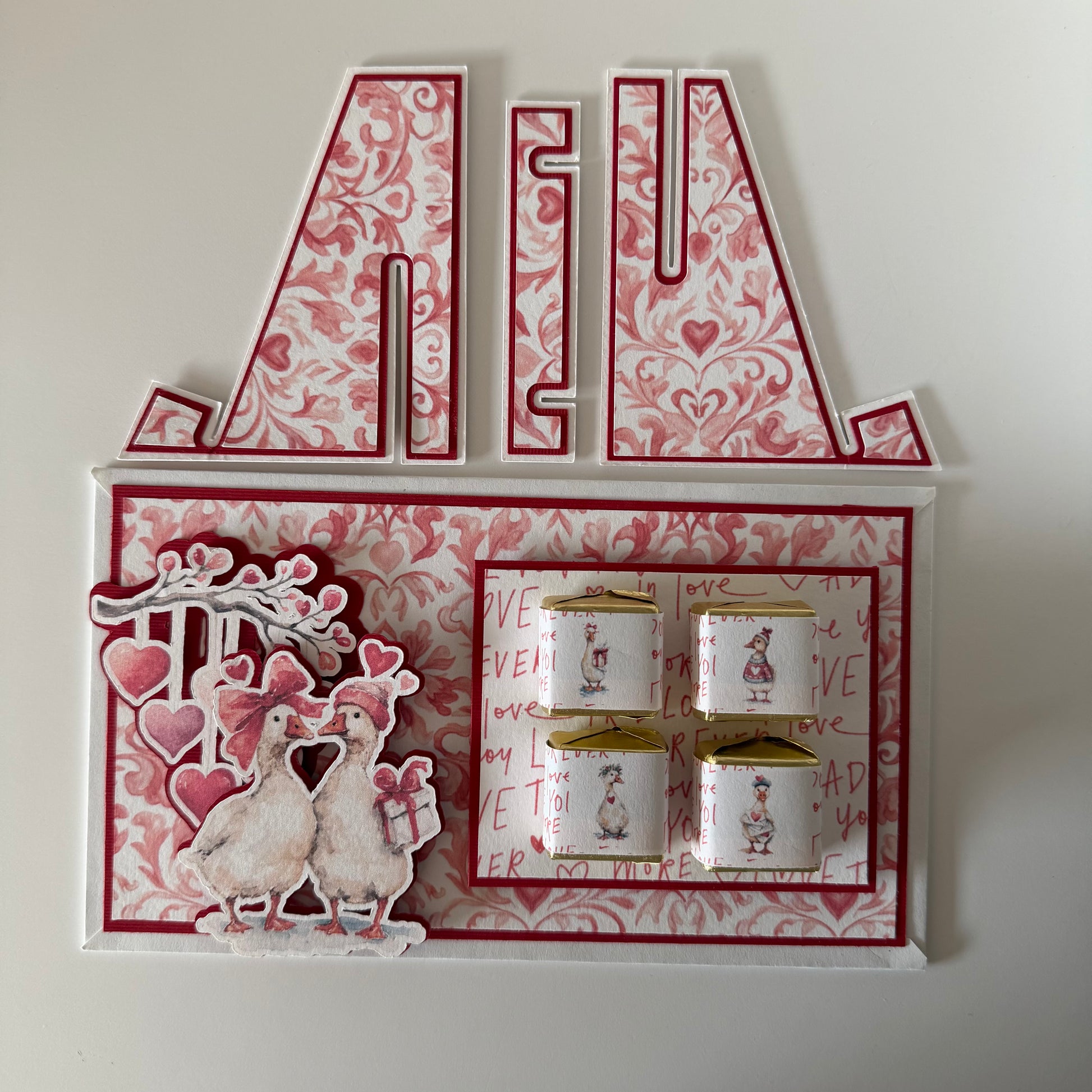 Lover Ducks nasce come un regalo semplice: una cartolina con cioccolatini personalizzati.